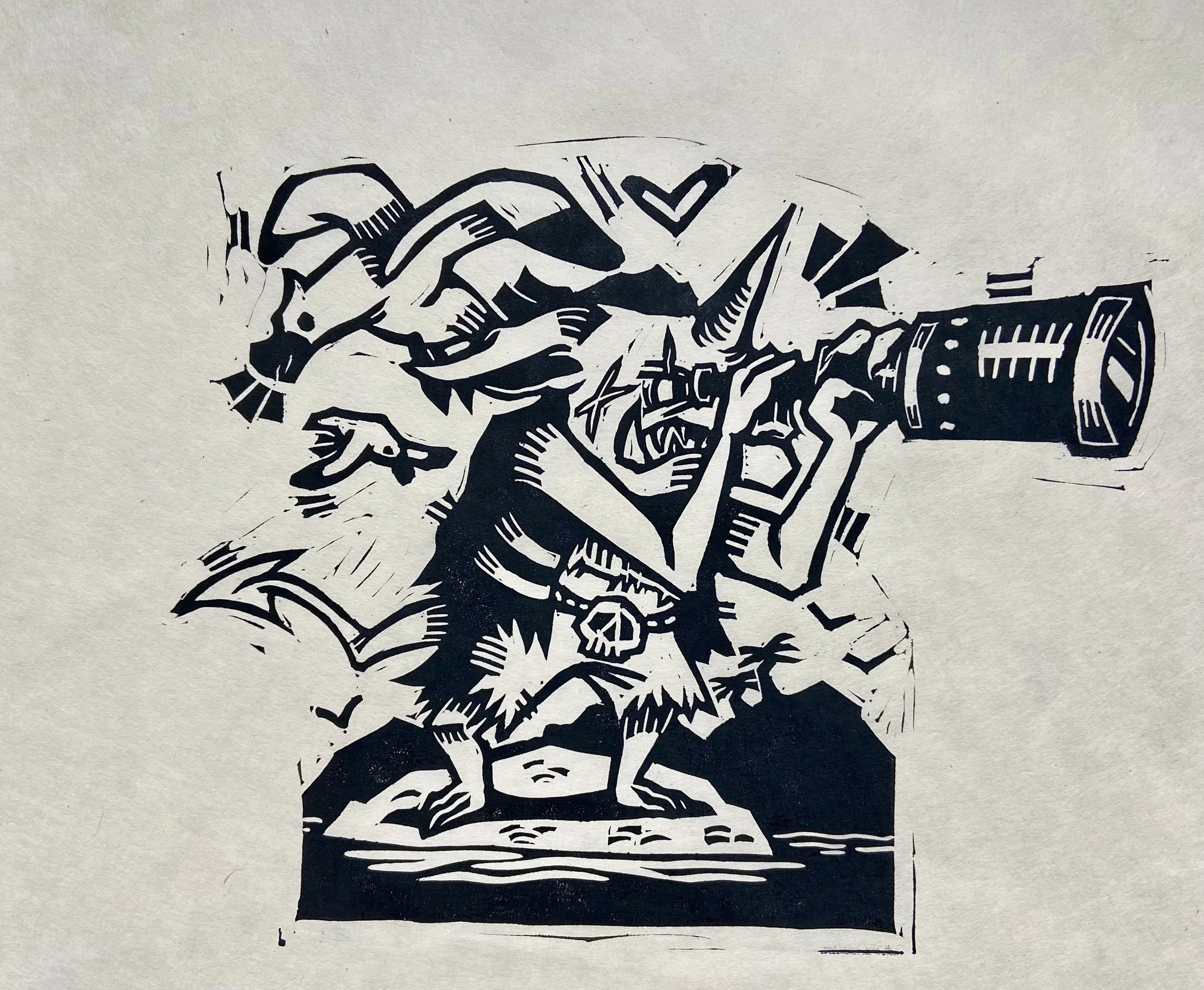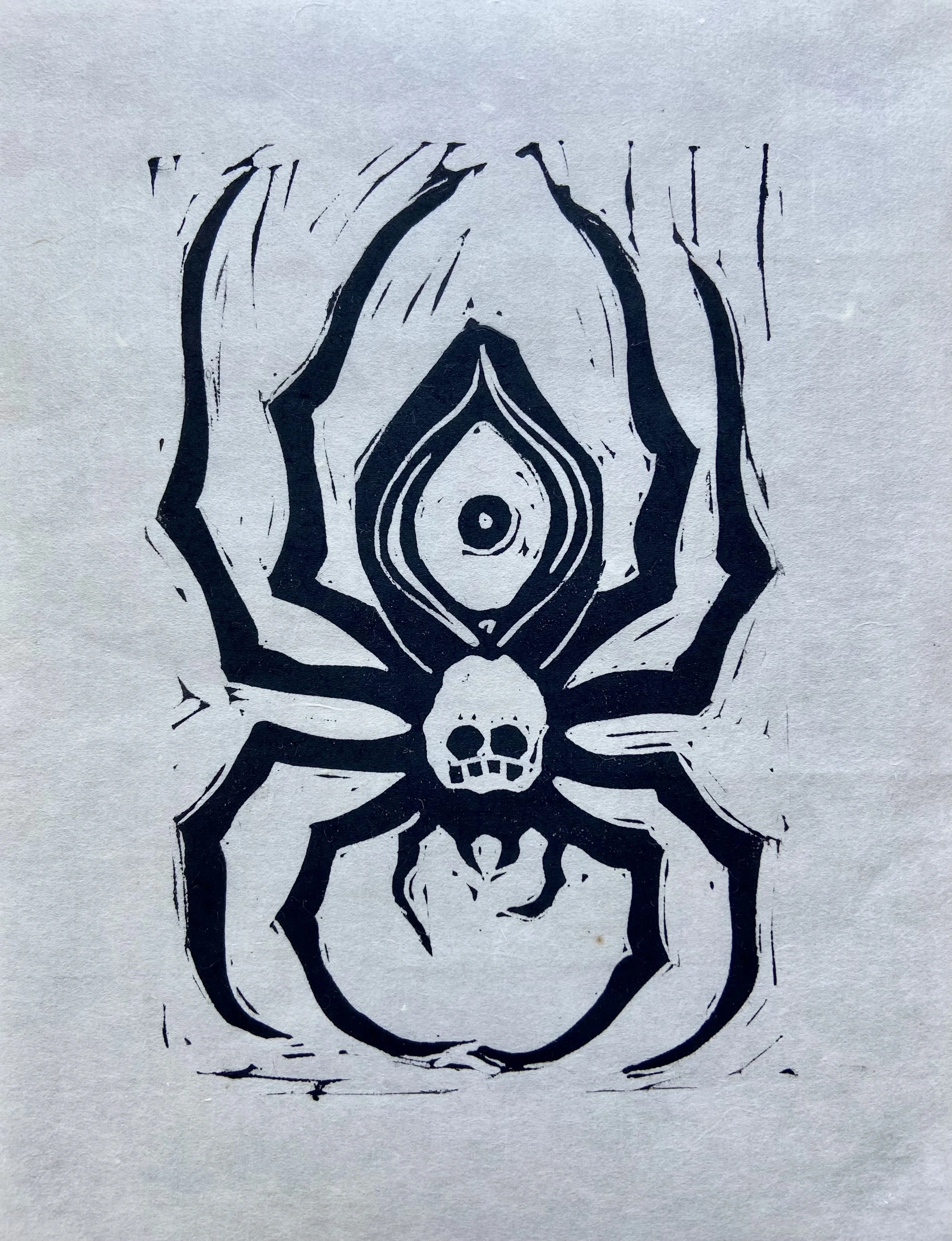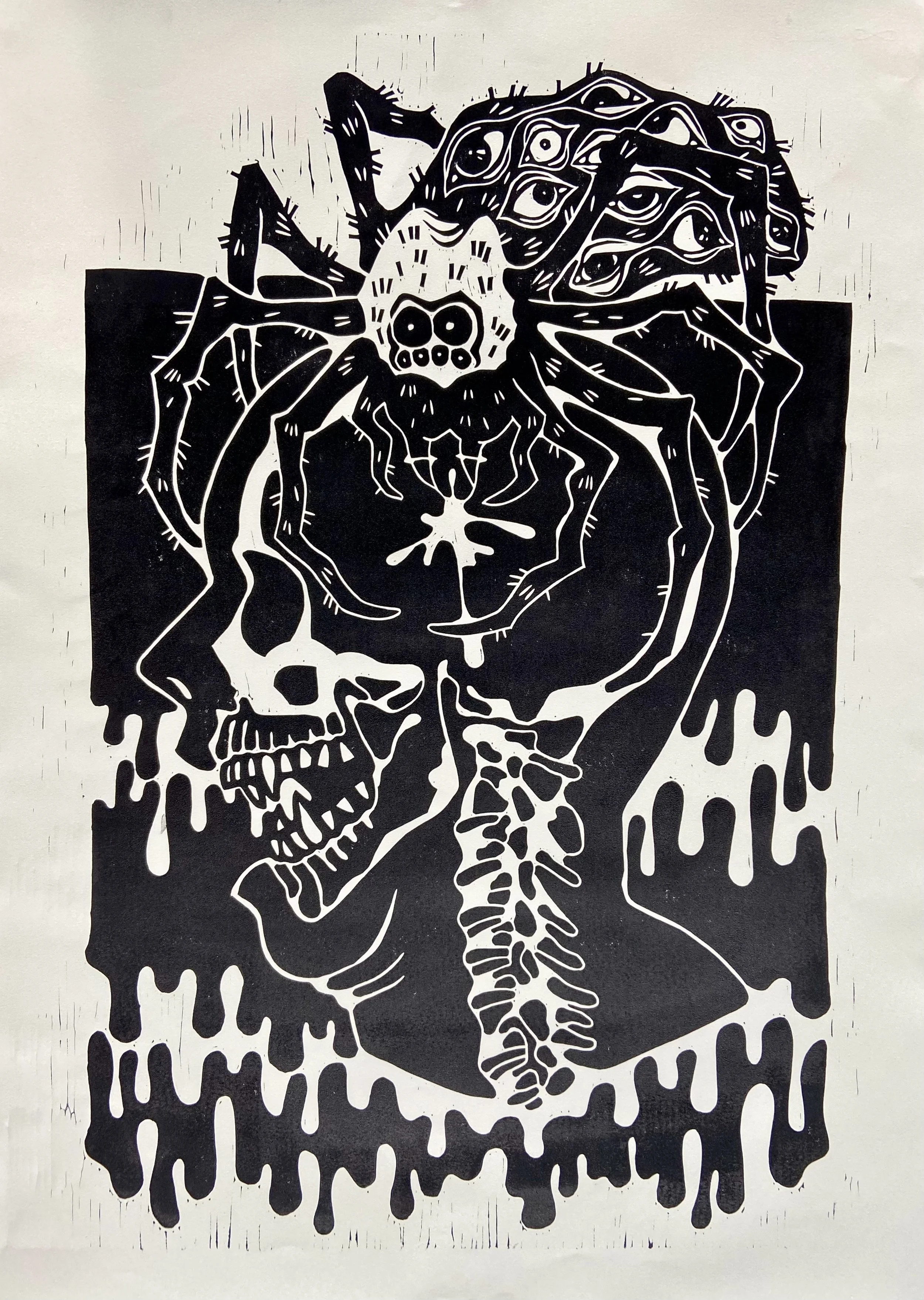 Hello, my name is Ashley Norman and I’m a printmaker from Oklahoma. Roadrunner Wind Waker Bokoblin Self-Portrait X-Ray Anxiety Spider Hatchlings of Fear