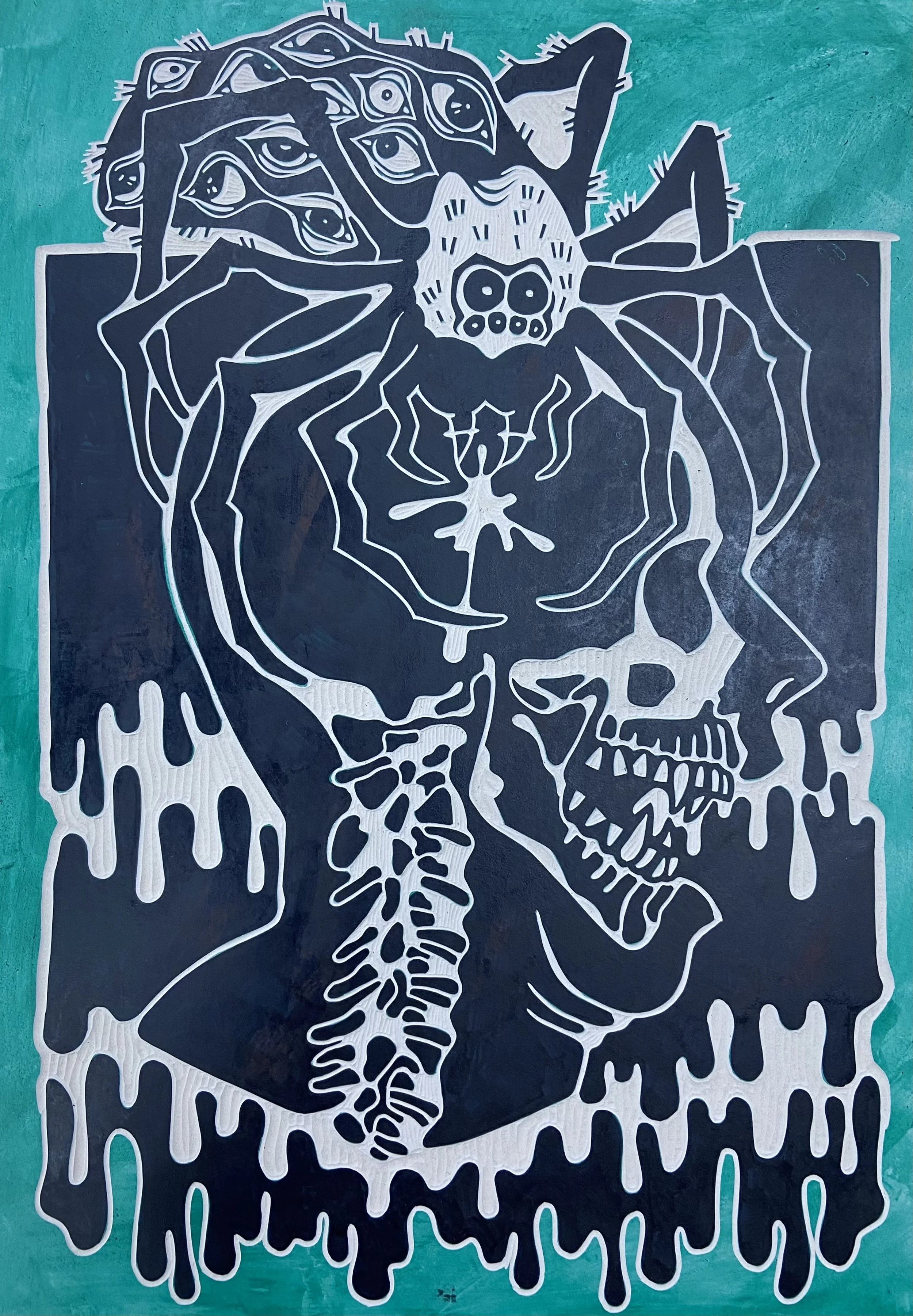 X-RayHand Printed linocut for my senior exhibit at East Central UniversityOn 19” by 26” Rives 115 gsm (cream)